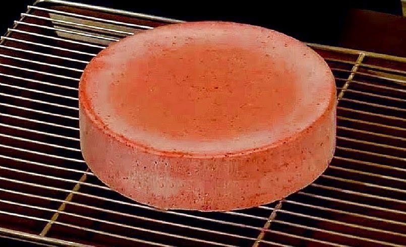 Υπάρχει και μια δεύτερη εκδοχή. Το βάζουμε στο ψυγείο για 24 ώρες, κατόπιν το ζεσταίνουμε στους 28 C. βαθμούς, και το δουλεύουμε με το ραβδομπλέντερ να γίνει λείο, και να διαλυθούν οι φυσαλίδες. (Προσοχή όμως, το ραβδομπλέντερ να πατά στον πυθμένα, για να μην τραβήξει αέρα, και δημιουργήσει περισσότερες φυσαλίδες),